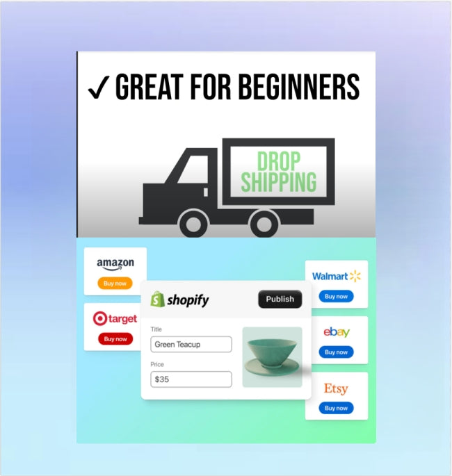 Choose your own product catalog from us sell to the top online marketplaces like Amazon, Walmart, eBay, and more.
